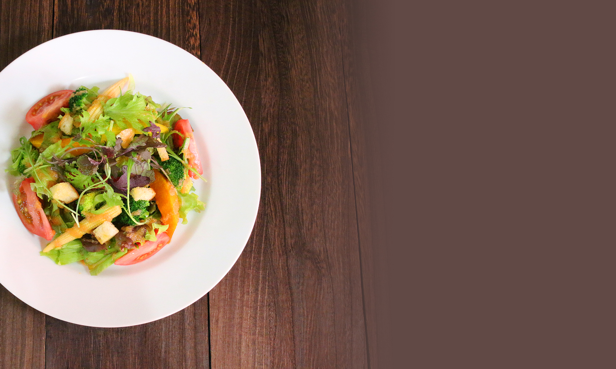 香り豊かなお野菜を、こだわりの詰まったドレッシングで仕上げました。